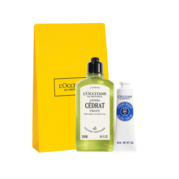 Ļaujies svaigajam un šarmantajam Cedrat aromātam. Citruss, savienojumā ar cedrat augli, piešķir produktiem svaigu un dzirkstošu aromātu. Komplekts papildināts ar ikonisko šī sviesta roku krēmu.