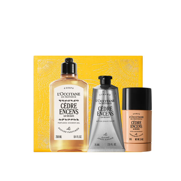 Cedre Encens produktu trio jaukā dāvanu komplektā viņam. Izmeklētās kolekcijas produkti būs izcila dāvana siltu, dūmakainu vaniļas aromātu mīļotājiem.