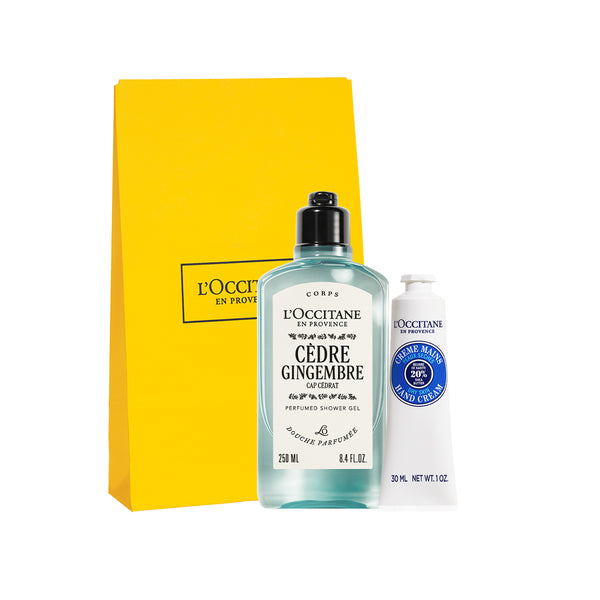 Ļaujies svaigajam un šarmantajam Cedre Gingembre aromātam. Komplekts papildināts ar ikonisko šī sviesta roku krēmu.