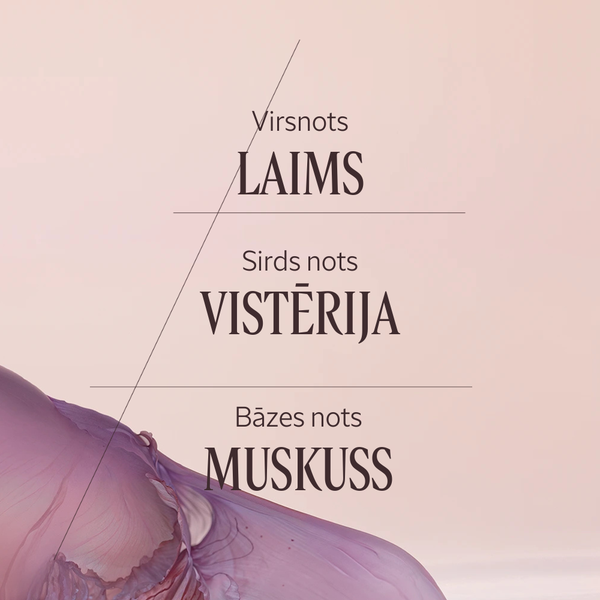 Parfimērijas ūdeni raksturo svaigums, pikants ziedu maigums, muskusa notis.