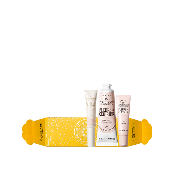 L'Occitane divu ikonisku kolekciju mini izlase jaukā dāvanu komplektā. Ķiršu ziedu roku krēms un lūpu balzams sniegs rūpes par Tavām rokām un lūpām, peonijas nagu un kutikulu eļļa mīkstinās kutikulas un stiprinās nagus.