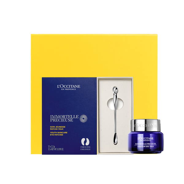 Īpaši izmeklēts dāvanu komplekts sejas ādas kopšanai rūpēm par ādu zonā ap acīm. Komplektā apvienots Precious balzams acu zonai, Precious acu patči un multifunkcionāla spatula krēma uzklāšanai.