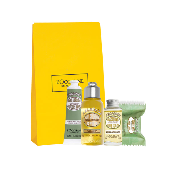 Labāko mandeles mini produktu izlase jaukā dāvanu komplektā. Maigā dušas eļļa delikāti attīrīs ādu, vannas kubiņš sniegs relaksācijas mirkli, mandeļu eļļa intensīvi mitrinās ādu, roku krēms sniegs delikātas rūpes par roku ādu.