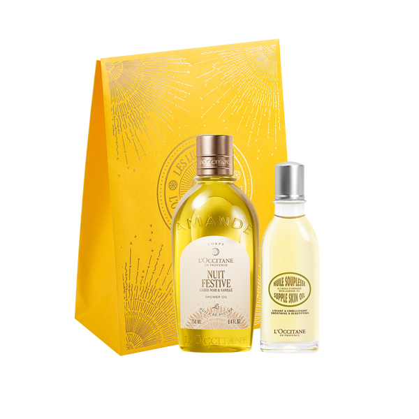Nuit Festive dušas eļļa un ķermeņa eļļa - tā ir ķermeņa ādas lutināšana ar labāko, ko dabas veltes ir sniegušas. Perfekts ķermeņa kopšanas duets, kas sniegs delikātu adas attīrīšanu un intensīvu mitrināšanu.
