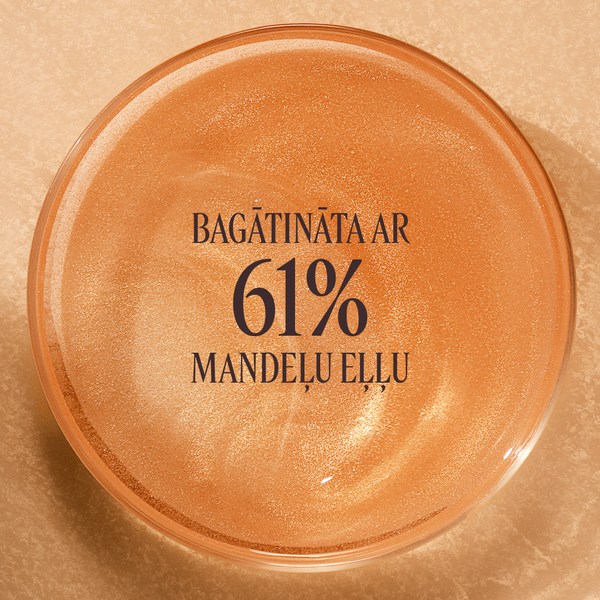 Unikālā mirdzošā mandeļu ķermeņa eļļa mitrina un mīkstina ādu, padarot to zīdaini maigu un elastīgu. Tās vieglā tekstūra ātri iesūcas ādā, atstājot uz tās maigu, zeltainu mirdzumu.