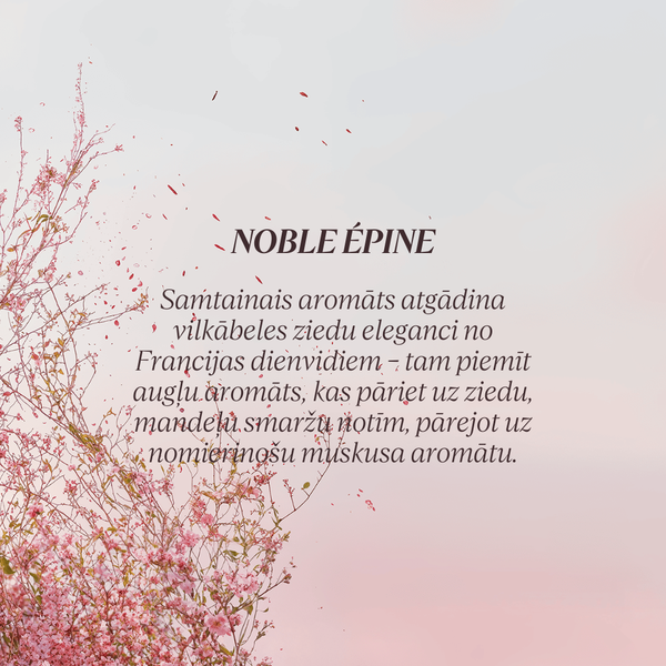 Vilkābeles ziedi ir pazīstami kā tīrības simbols, un iedvesmots no tiem, L'Occitane radītais Noble Epine parfimērijas ūdens ir maigs un delikāts ziedu pūdera aromāts.