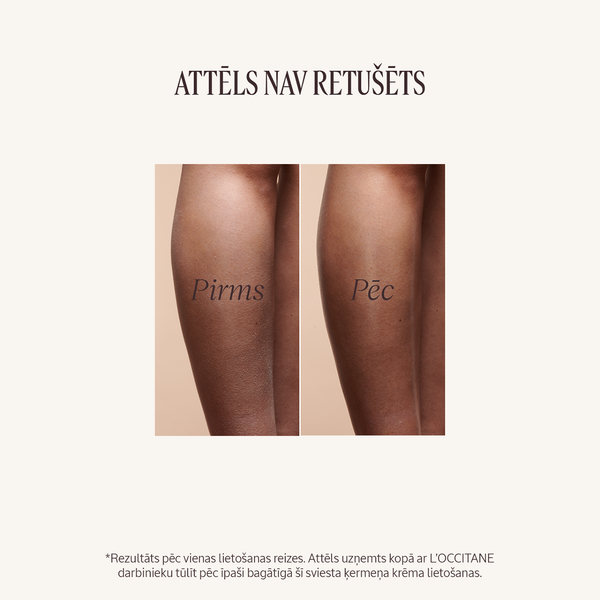 Šī sviesta īpaši bagātīgais ķermeņa krēms, kas izgatavots no vairāk nekā 95% dabīgas izcelsmes sastāvdaļām, ir unikāls ķermeņa kopšanas līdzeklis sausai, ļoti sausai un jutīgai ādai, un to var lietot visa ģimene. Saturošs augstu šī sviesta koncentrāciju (25%), bagātīgais ķermeņa krēms palīdz intensīvi barot ādu, aizsargājot to no sausuma un stiprinot tās hidrolipīdu barjeru. Nodrošinot ilgstošu mitrināšanu, tas palīdz mīkstināt un nomierināt ādu, neatstājot taukainu slāni.